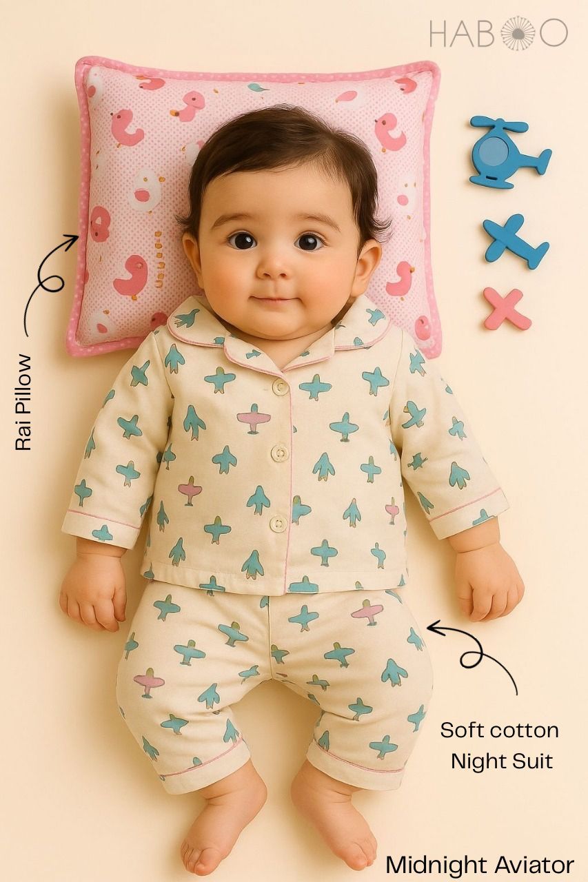 “My baby sleeps peacefully in this night suit. The cotton is super soft and breathable. The little airplane prints are adorable too!”