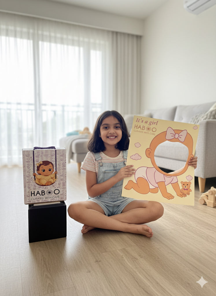 A gender reveal cut-out is added to every gift box — a unique Haboo touch.